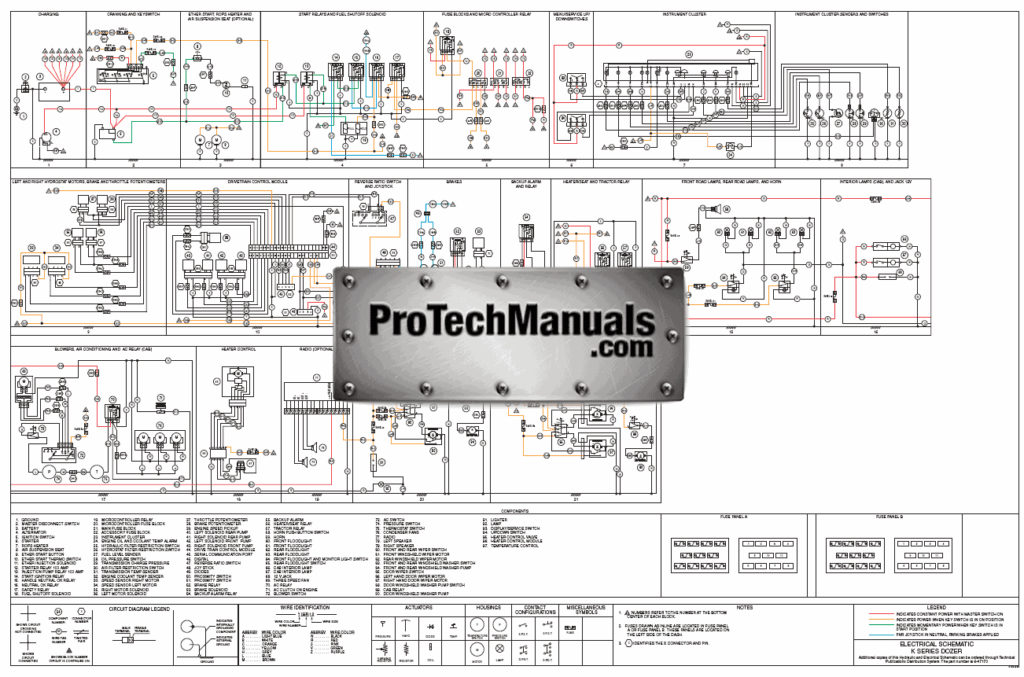 This digital download includes large format OEM wiring and hydraulic schematics to help with troubleshooting the dozer’s electrical and hydraulic systems. The large, high resolution format makes it easy to zoom in on particular circuits and trace wires.